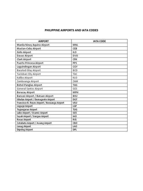 So there you have it, folks! Now you have a good understanding of Philippines IATA codes and how they can enhance your travel experiences. These three-letter identifiers are a cornerstone of the aviation industry, streamlining operations and providing a standardized system for airports worldwide. Whether you’re a seasoned traveler or are preparing for your first international adventure, knowing these codes is a simple yet effective way to make your journey smoother and more efficient. By mastering IATA codes , you’ll be well on your way to a more informed and hassle-free travel experience. Happy travels!