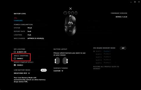 6. Enable Angle Snapping: Toggle the switch or check the box next to the angle snapping option to enable it. In some versions of G HUB, you may also have the option to adjust the level of angle snapping. Start with a low setting and gradually increase it until you find a level that feels comfortable for you.
