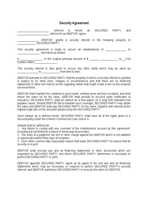 Alright, let’s get into the nitty-gritty of the iMortgage Security Agreement . What are the essential parts you absolutely need to understand? First off, you’ll see a clear identification of the parties involved : that’s you, the borrower, and the lender. Make sure your names and the lender’s name are correctly stated. Then comes the description of the property . This needs to be precise, usually including the full legal description of the land and any structures on it. It’s vital that this matches the property you intend to buy or refinance exactly. Next up is the loan details . This section will reference the promissory note (the actual promise to pay) and outline the principal amount of the loan, the interest rate, and the repayment terms. While the security agreement doesn’t set these terms, it points to the document that does and confirms that the property secures these obligations. A really critical part is the grant of security interest . This is the legal language where you, as the borrower, grant the lender a security interest in the property. It essentially means you’re pledging the property as collateral. You’ll also find clauses about covenants and warranties . These are promises you make to the lender. For example, you’ll likely promise to maintain the property, pay property taxes and insurance, and not commit waste (i.e., not damage the property intentionally). There are also clauses concerning default and remedies . This details what constitutes a default (like missing payments) and what the lender can do about it (like foreclosure). Finally, you might see information about subordination, assignment, and further assurances . Subordination deals with the priority of liens if other loans are involved. Assignment is about the lender’s right to transfer the loan. Further assurances means you agree to sign any additional documents needed to perfect the lender’s security interest. Understanding these components is your first line of defense in navigating your mortgage.