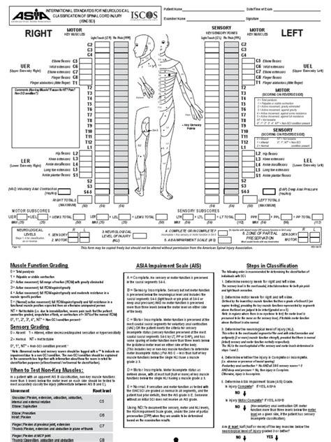 • Thorough Documentation: Detailed documentation of the findings is essential. Accurate documentation includes sensory levels, motor levels, and AIS grades. This written record forms the basis for treatment planning, progress tracking, and research. This helps ensure that the information is correctly communicated among the healthcare team and preserved for future reference.