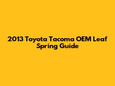 Hey Tacoma enthusiasts! If you're diving into the world of leaf spring replacement for your 2013 Toyota Tacoma, you've come to the right place. Let's break down everything you need to know about OEM (Original Equipment Manufacturer) leaf springs and how to ensure your ride is smooth and safe. Your 2013 Toyota Tacoma's leaf springs play a critical role in its suspension system, directly influencing ride quality, load-carrying capacity, and overall vehicle stability. Over time, these springs can wear out, sag, or even break, leading to a noticeable decline in performance. Choosing the right replacement is essential to restoring your Tacoma to its optimal condition. We'll cover why OEM leaf springs are often the preferred choice, what to look for when purchasing them, and some tips for installation. Whether you're a seasoned mechanic or a DIY newbie, this guide will provide the knowledge you need to make an informed decision. When your leaf springs are compromised, you might notice several telltale signs. These include a sagging rear end, especially when carrying a load, a bumpy or uncomfortable ride, and unusual noises like squeaking or clunking from the suspension. Ignoring these symptoms can lead to further damage to other suspension components and compromise your vehicle's handling and safety. Therefore, timely replacement of worn-out leaf springs is crucial for maintaining your Tacoma's performance and ensuring a safe driving experience. By understanding the importance of proper leaf spring maintenance and replacement, you can keep your Tacoma running smoothly for years to come.