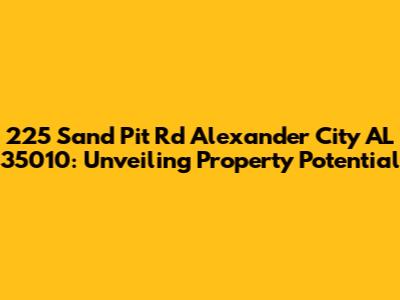 Hey there, property enthusiasts! Let's dive deep into a fascinating location: 225 Sand Pit Rd, Alexander City, AL 35010. This address is more than just a string of numbers and letters; it's a gateway to understanding real estate opportunities in a dynamic market. This comprehensive analysis will explore the property's potential, consider the surrounding area's characteristics, and provide insights into investment possibilities. So, grab a coffee, settle in, and let's unravel what makes 225 Sand Pit Rd an intriguing point of interest. We'll be covering everything from property features to local market trends, helping you make informed decisions.