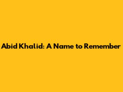 Abid Khalid: A Name To Remember
