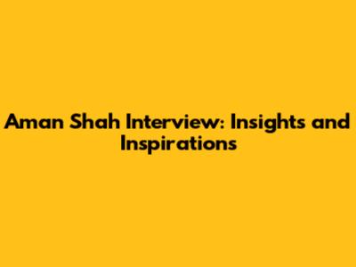 Aman Shah Interview: Insights And Inspirations