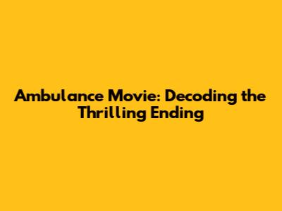 Ambulance Movie: Decoding The Thrilling Ending