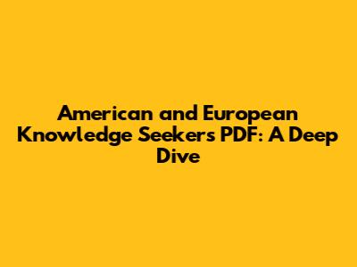 American And European Knowledge Seekers PDF: A Deep Dive