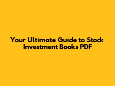 Best Stock Investment Books PDF Guide