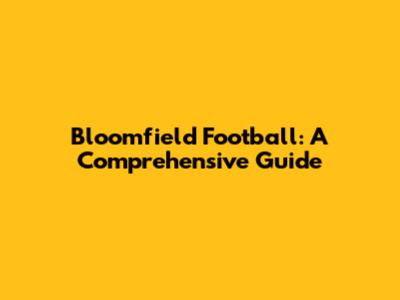 Bloomfield Football: History, Teams & More!