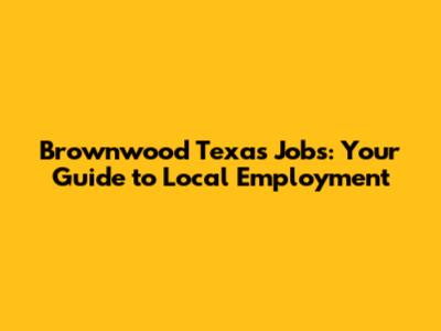 Brownwood Texas Jobs: Your Guide To Local Employment