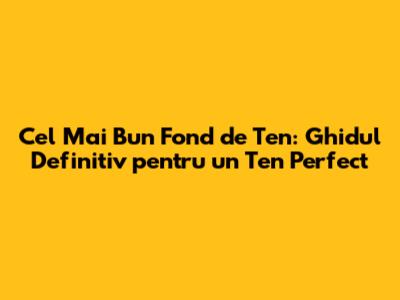 Tipuri de Ten și Recomandări de Fond de Ten
