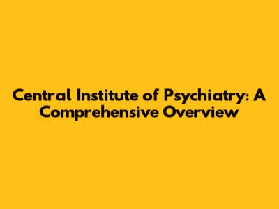 Central Institute Of Psychiatry: A Deep Dive