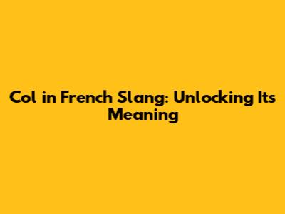 Col In French Slang: Unlocking Its Meaning