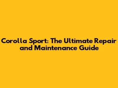 Corolla Sport: Ultimate Guide To Repair & Maintenance