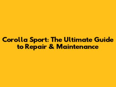 Corolla Sport: Ultimate Guide To Repair & Maintenance
