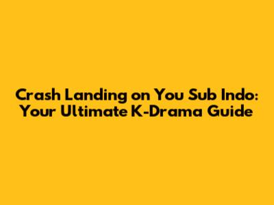 Crash Landing On You Sub Indo: Your Ultimate K-Drama Guide