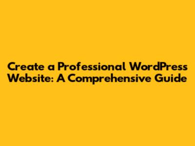Create A Professional WordPress Website: A Comprehensive Guide