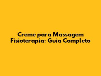 Creme Para Massagem Fisioterapia: Guia Completo