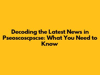 Decoding The Latest News In Pseoscoscpscse: What You Need To Know