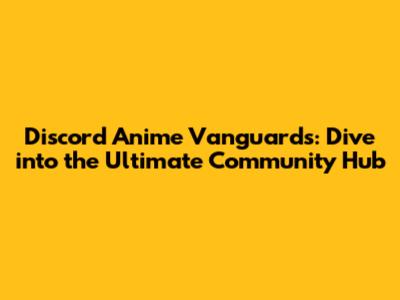 Discord Anime Vanguards: Your Ultimate Community Hub