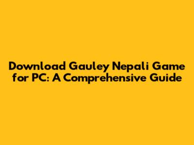Download Gauley Nepali Game For PC: A Comprehensive Guide