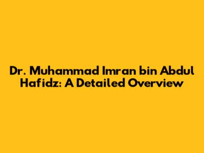 Let's dive into the world of Dr. Muhammad Imran bin Abdul Hafidz. This article aims to provide a comprehensive look at his background, education, career, and contributions. We'll explore what makes him a notable figure in his field and highlight key aspects of his journey. Whether you're a student, a professional, or simply curious, this overview will offer valuable insights into the life and work of Dr. Muhammad Imran.