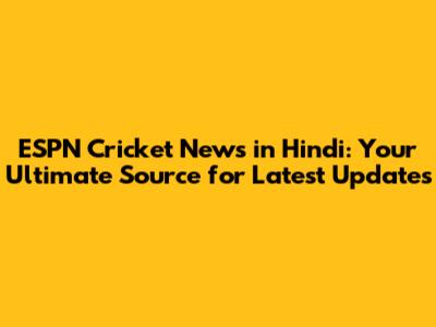 ESPN Cricket News In Hindi: Latest Updates