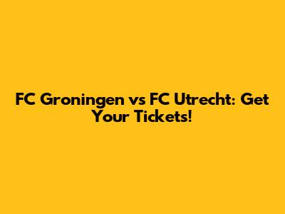 FC Groningen Vs FC Utrecht: Get Your Tickets!