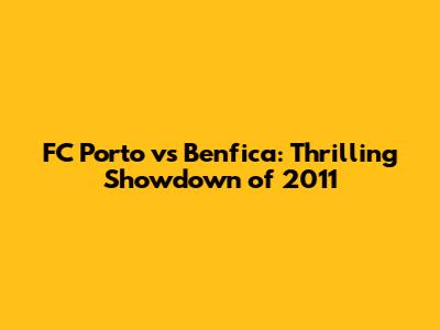 FC Porto Vs Benfica: Thrilling Showdown Of 2011