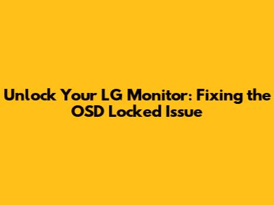 Hey guys! So, you've probably been there: you're trying to tweak some settings on your LG monitor, maybe adjust the brightness or switch to a different picture mode, and BAM! You hit a wall. The dreaded "OSD Locked" message pops up, and suddenly, your monitor's On-Screen Display is completely inaccessible. Frustrating, right? Don't sweat it! In this comprehensive guide, we're going to dive deep into why your LG monitor might be locked and, more importantly, how to fix the OSD locked issue so you can get back to enjoying your screen just the way you like it. We'll cover everything from the simplest button presses to a bit more advanced troubleshooting, ensuring you can regain control of your display settings. So, grab a coffee, settle in, and let's get your LG monitor unlocked!