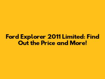 Hey guys! Are you curious about the Ford Explorer 2011 Limited and trying to figure out its price? You've come to the right place. In this article, we'll dive deep into everything you need to know about the Ford Explorer 2011 Limited, including what you can expect to pay, its features, reliability, and overall value. Whether you're considering buying one or just doing some research, let's get started!