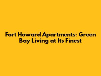 Welcome, guys, to your ultimate guide to Fort Howard Apartments in Green Bay! If you're on the hunt for a place that combines comfort, convenience, and a vibrant community, then you've hit the jackpot. Let's dive deep into what makes these apartments a fantastic choice for anyone looking to settle down in Green Bay.