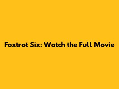 Foxtrot Six: Watch The Full Movie