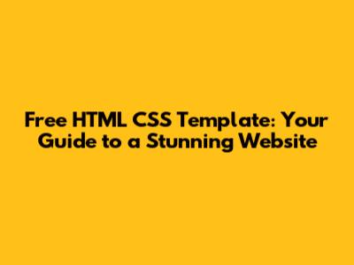 Free HTML CSS Template: Your Guide To A Stunning Website