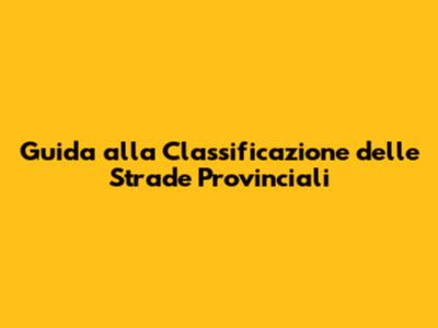 Guida Alla Classificazione Delle Strade Provinciali