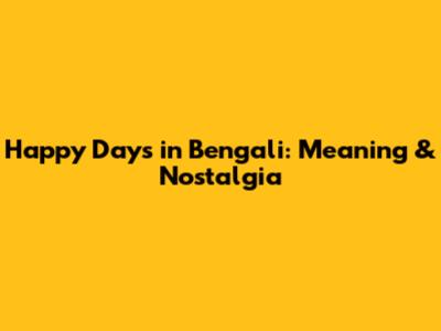 Happy Days In Bengali: Meaning & Nostalgia