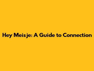 Hey Meisje: A Guide To Connection
