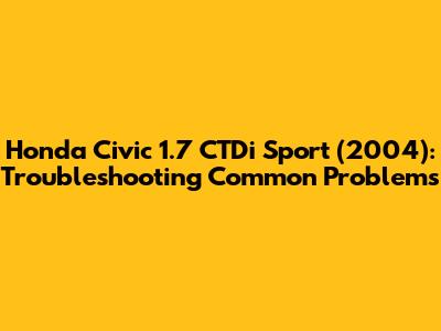 Honda Civic 1.7 CTDi Sport (2004) Problems & Issues