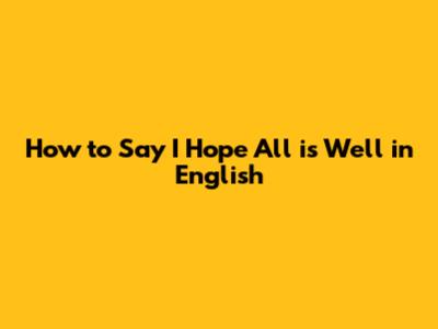 How To Say I Hope All Is Well In English