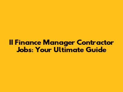 II Finance Manager Contractor Jobs: Your Ultimate Guide
