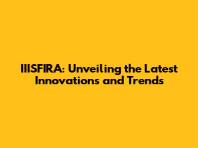 IIISFIRA: Unveiling The Latest Innovations And Trends
