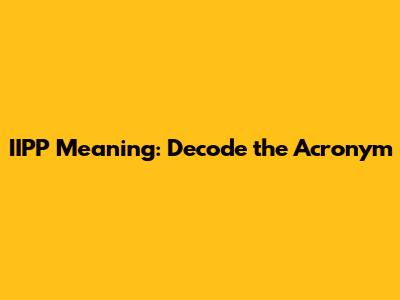IIPP Meaning: Decode The Acronym