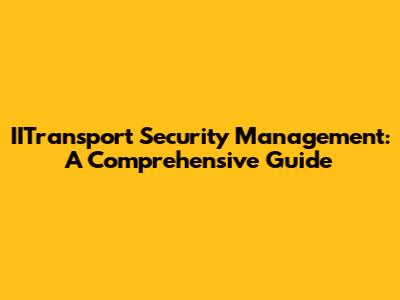 IITransport Security Management: A Comprehensive Guide