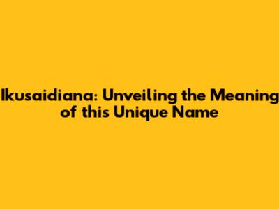 Ikusaidiana: Unveiling The Meaning Of This Unique Name