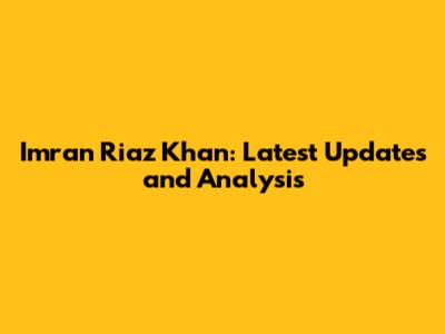 Imran Riaz Khan: Latest Updates And Analysis