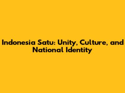 Indonesia Satu: Unity, Culture, And National Identity