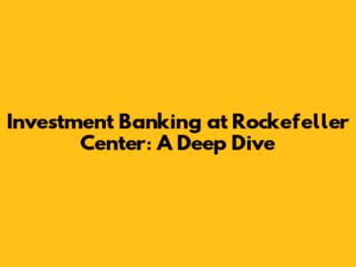 Investment Banking At Rockefeller Center: A Deep Dive