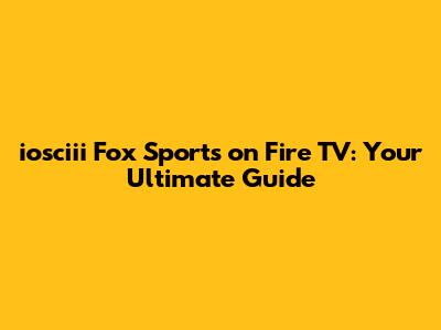 Iosciii Fox Sports On Fire TV: Your Ultimate Guide