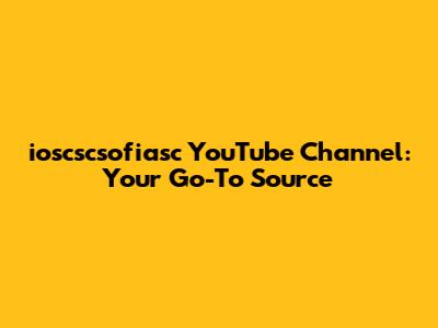 Ioscsofiasc YouTube Channel: Your Go-To Source