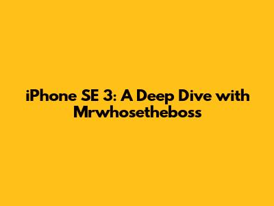 Hey guys! Today, we're diving deep into the iPhone SE 3, and who better to guide us than the king of tech reviews himself, Mrwhosetheboss? If you're on the fence about this budget-friendly iPhone, you've come to the right place. We're going to break down everything you need to know, from its performance to its camera capabilities, all through the lens of one of the most trusted voices in tech. So, grab your popcorn, and let's get into it!