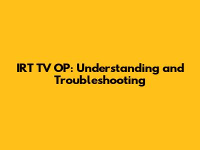 Let's dive into the world of IRT TV OP, guys! If you're scratching your head about what it is, or if you're facing some frustrating issues, you've come to the right place. This guide will break down everything you need to know, from the basics to troubleshooting common problems. Buckle up, because we're about to get technical – but don't worry, I'll keep it simple and fun!